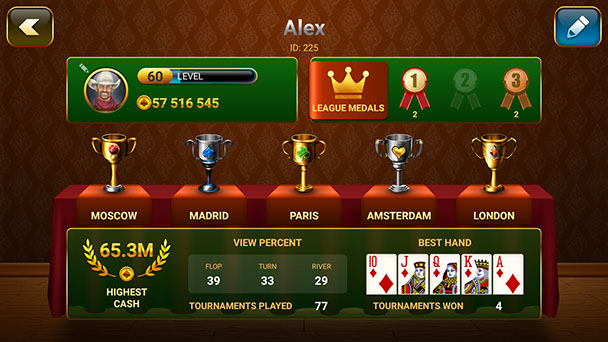 Play Poker online and pass championship across great cities: Moscow, Madrid, Paris, Amsterdam, London.